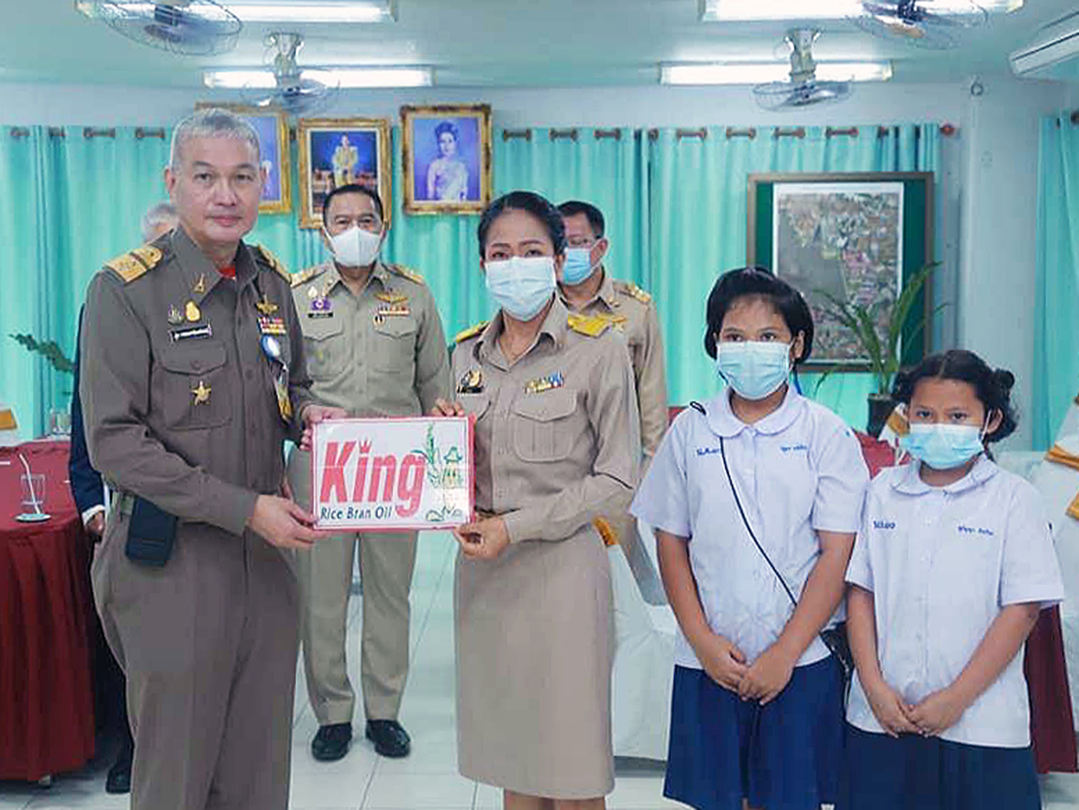 คิง มอบน้ำมันรำข้าวคิงแก่โรงเรียนในเขตพื้นที่ โครงการอันเนื่องมาจากพระราชดำริ จ.ระยอง รวม 30 ลัง