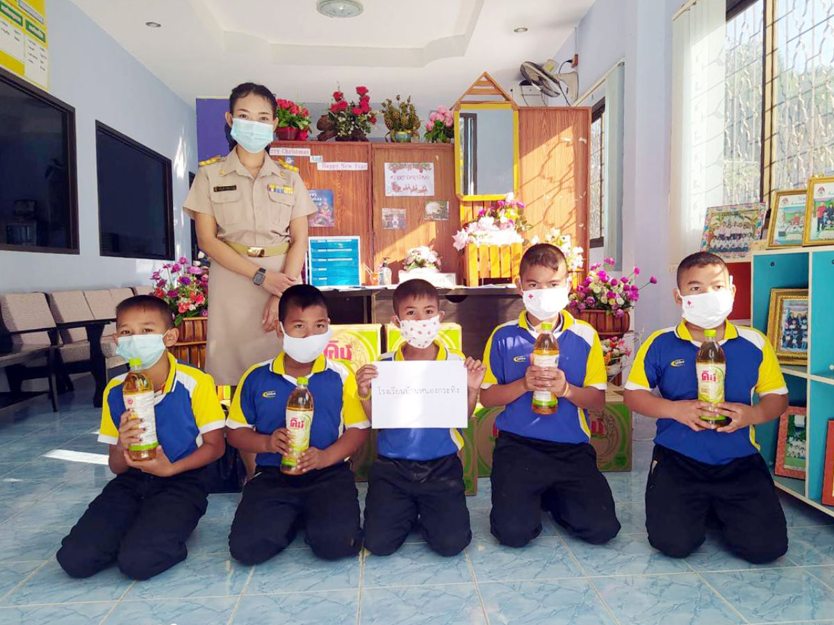 คิง สนับสนุนน้ำมันรำข้าวคิงสำหรับประกอบอาหารกลางวันแก่โรงเรียนในเขตพื้นที่ โครงการอันเนื่องมาจากพระราชดำริ จ.ประจวบคีรีขันธ์ รวม 30 ลัง