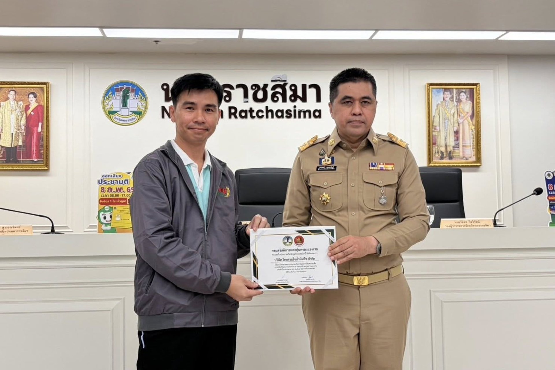 คิง เข้ารับใบประกาศเกียรติคุณโครงการ “สถานประกอบกิจการไม่มีการใช้แรงงานเด็ก การบังคับใช้แรงงานหรือบริการ และการค้ามนุษย์ด้านแรงงาน” จากสำนักงานสวัสดิการและคุ้มครองแรงงาน จ.นครราชสีมา